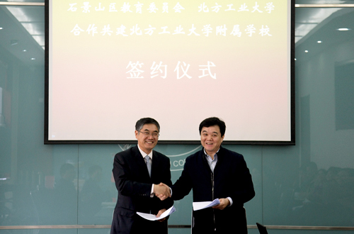 2015年4月8日上午,石景山區教委與北方工業大學合作共建北方工業大學附屬學校簽約儀式在石景山區教委三層會議室舉行。