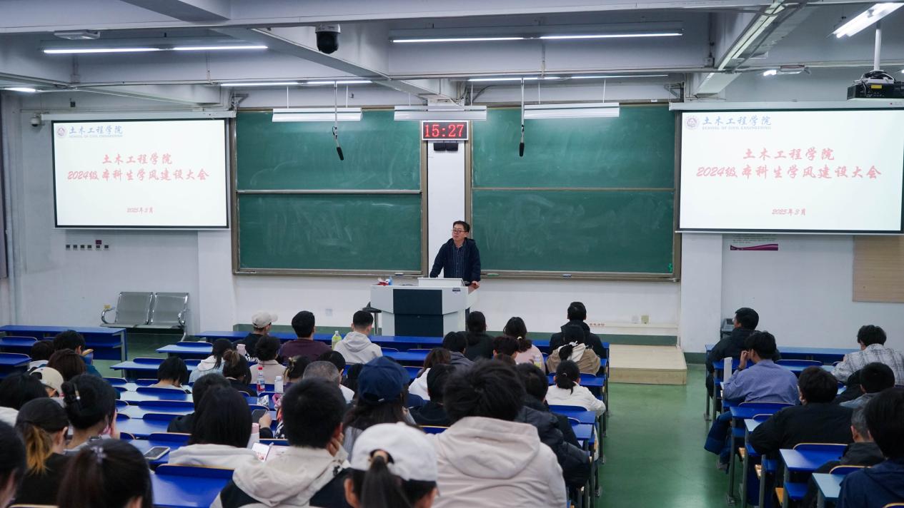 為持續扎實推進學院學風建設工作,進一步深化新生引航工程,近日,土木工程學院在浩學樓東203召開2024級本科生學風建設大會。學院黨委副書記馮少杰、團委書記金磊、校團委王錚老師、輔導員孫永君及2024級全體本科生出席了大會。金磊對2024級過去一個學期的學風情況進行了總結,他表示,2024級學生學習成績較其他年級同期成績有顯著提升,班級整體學風呈現良好上升態勢。他強調,學風是治學精神、態度和學生整體風貌的綜合體現,...