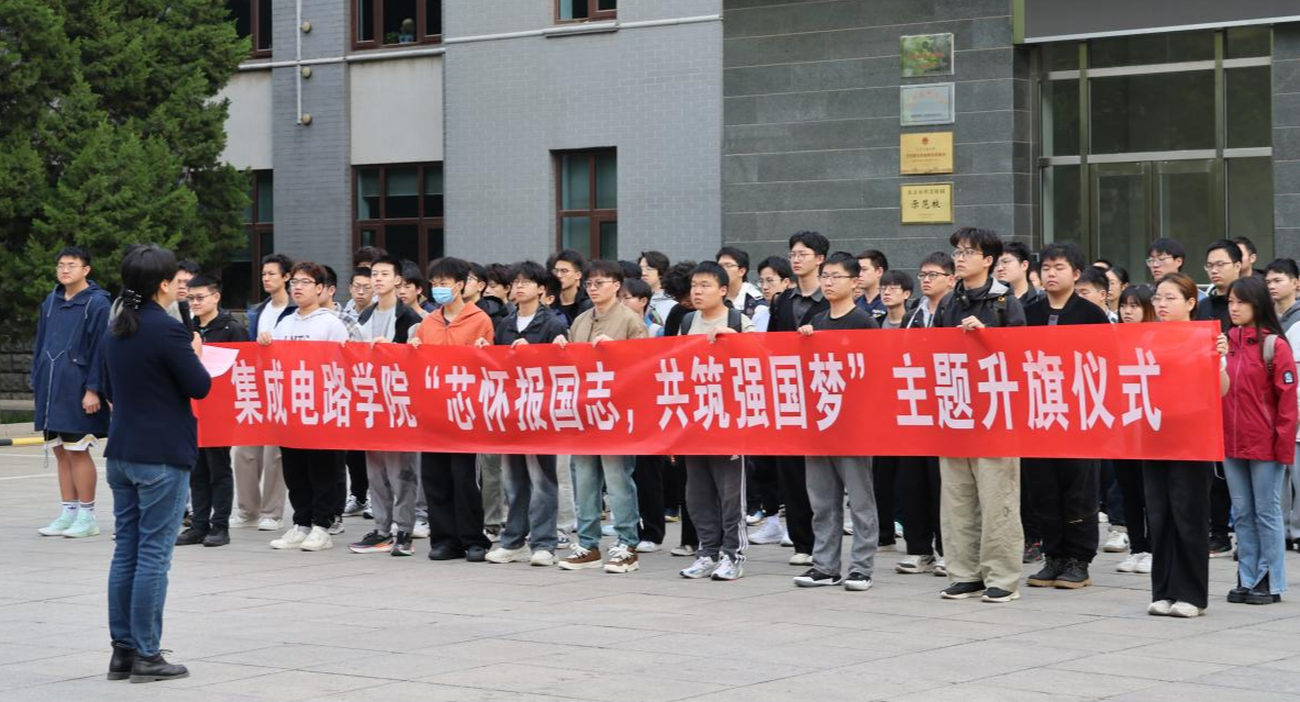 4月21日清晨,集成電路學院在敦品樓前隆重舉行“芯懷報國志,共筑強國夢”主題升旗儀式。學院副院長張靜、黨總支副書記陳衛、輔導員王鑫淼及全體24級本科生參加本次活動。國旗班隊員邁著鏗鏘有力的步伐護送五星紅旗入場。在雄壯的《義勇軍進行曲》中,鮮艷的國旗冉冉升起,全體師生肅立注目,莊嚴的儀式激蕩著每個人的愛國情懷。學院副院長張靜在講話中表示,清明時節緬懷先烈,五一勞動節弘揚奮斗精神,作為集成電路人,我們更...