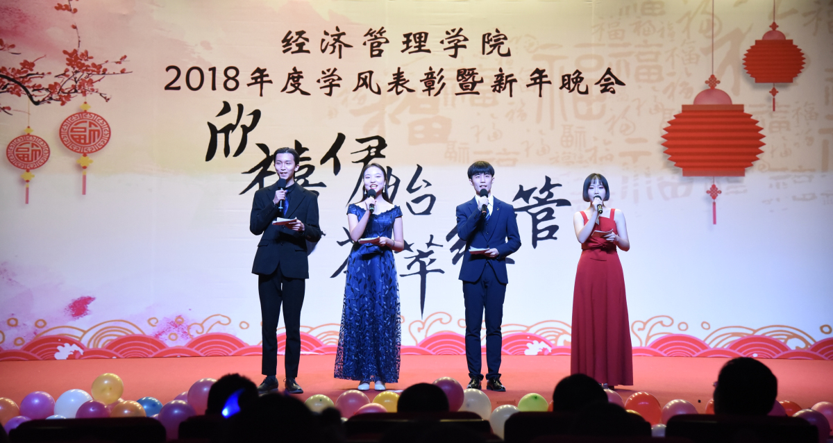 12月18日晚,經濟管理學院在圖書館報告廳舉辦“欣禧伊始 薈萃經管”2018年度學風表彰暨新年晚會。學生工作部部長高國偉、校團委書記何有華、學生工作部副部長趙帥、經濟管理學院全體領導班子成員、各系主任、班導師、輔導員及600余名同學共同參加了本次晚會。晚會現場,院長趙繼新老師向學院全體師生送出了新年寄語,他對大家一年來的表現給予了肯定,表示大家在學校黨委的正確領導下,經歷了忙碌,也收獲了成績。成績的取得離...