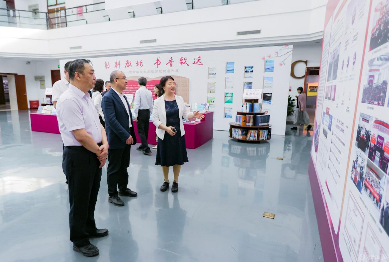 在靜學樓二層展廳,于英杰書記參觀了學校“舉旗鑄魂擔使命,凝心聚力奏強音”宣傳思想文化工作成就回顧展和“躬耕教壇書香致遠”教師教材著作成就展,聽取了我校召開宣傳思想文化工作會,凝聚“樣板建設 大有可為 爭先作為 人人有為”內生動力,推動事業高質量發展的情況匯報。于英杰書記重點了解了我校推進“興工報國”大思政課建設的情況,強調要深入推進思政課改革創新,加強思政課教師隊伍建設,提升思想政治工作實效。