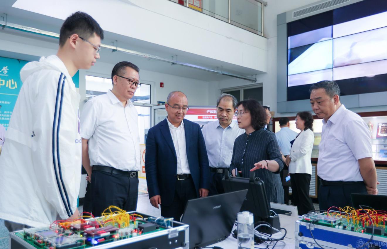 隨后,于英杰書記一行來到“工程訓練國家級教學示范中心”,聽取學校關于深化本科教育教學改革的情況匯報,參觀了智能制造實驗室,與現場實習學生進行深入交流,觀看學生科技創新作品,對我校在推進產教融合和數字化轉型方面取得的成績給予肯定。