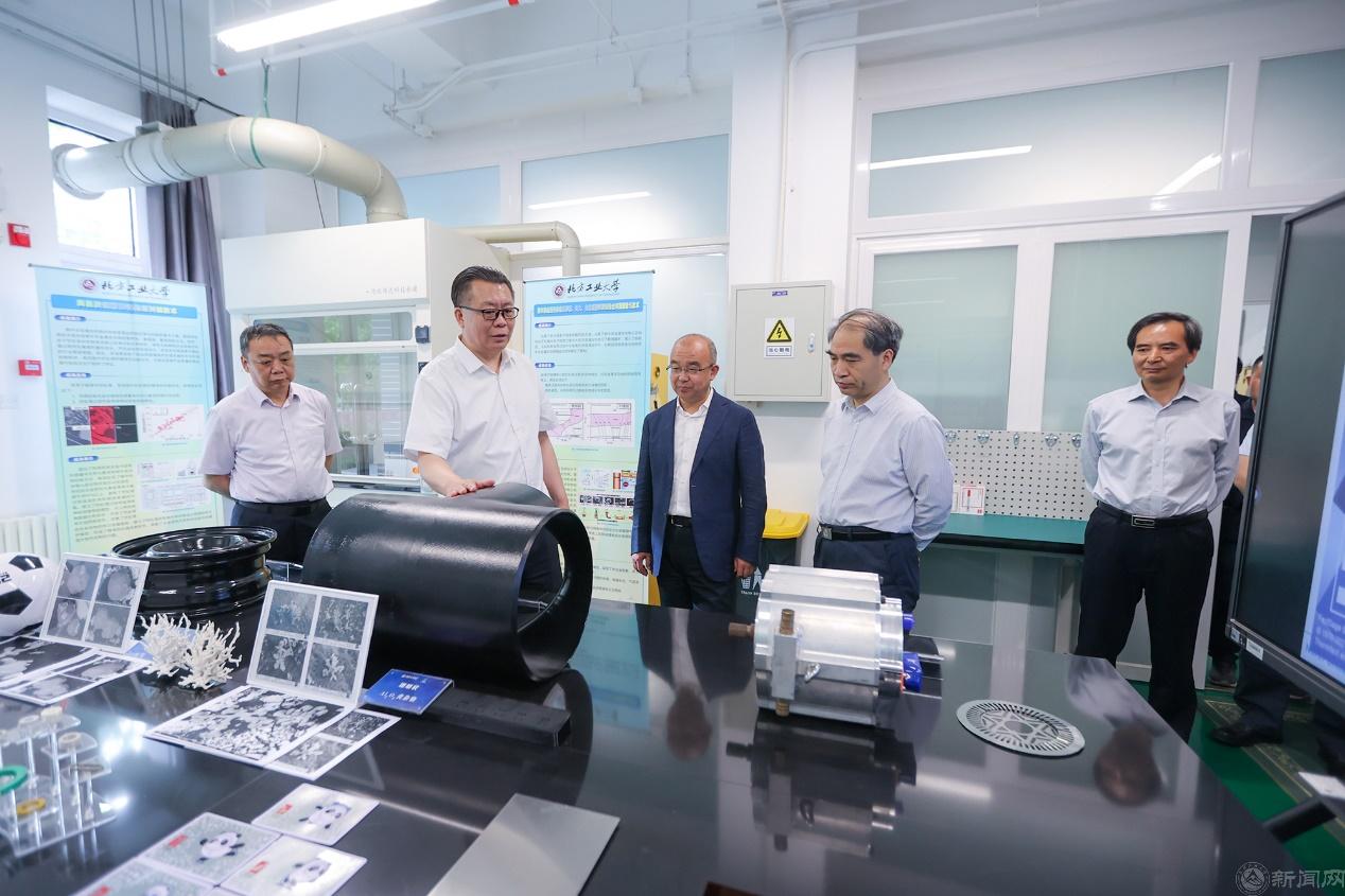 在博智樓,于英杰書記參觀了先進制造用高品質鋼鐵材料制備實驗室,深入了解“北京市工人先鋒號”科研團隊瞄準技術難關,助力新質生產力培育和提升方面情況。于英杰書記對“高鋼中心”團隊取得的成就表示肯定,希望學校繼續發揮科研優勢,在推動國家高水平科技自立自強中發揮重要作用。