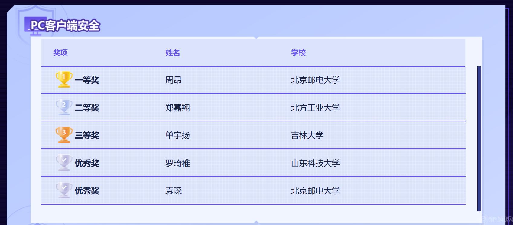 騰訊游戲安全技術(shù)競賽由企業(yè)騰訊科技有限公司主辦,是面向高校學(xué)生打造的國內(nèi)首個專注于“游戲安全”領(lǐng)域的技術(shù)賽事。本次大賽吸引了來自全國各高校的500多名參賽選手,決賽有包括北京郵電大學(xué)、中國科學(xué)院大學(xué)、哈爾濱工業(yè)大學(xué)、信息工程大學(xué)在內(nèi)的25所高校。鄭嘉翔同學(xué)經(jīng)過初賽與復(fù)賽總計6天、共144小時的高強度比賽,展示出扎實的理論功底和突出的實踐能力,受到評委的認(rèn)可,最終取得良好成績。