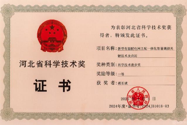 近日,河北省人民政府公布了2024年度河北省科學技術(shù)獎獲獎名單,我校電氣與控制工程學院胡長斌教授參與的“新型有源配電網(wǎng)主配一體化智慧調(diào)控關(guān)鍵技術(shù)及應(yīng)用”獲評河北省科學技術(shù)進步獎一等獎。