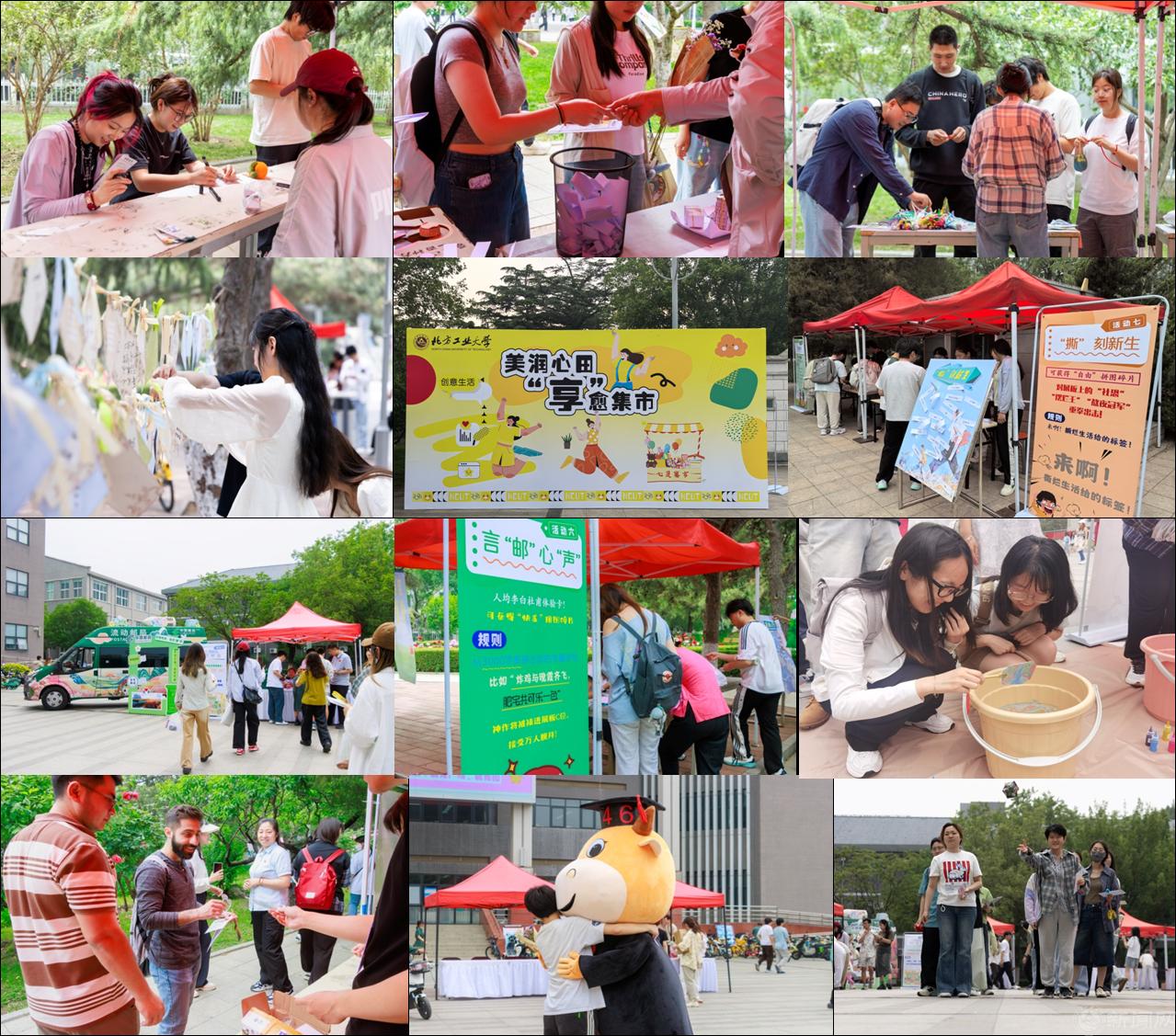 2025年5月21日中午,心理健康季主題室外活動在毓秀廣場和毓秀園舉行。活動由學工部和校團委聯合主辦、學生會承辦,以“美潤心田 ‘享’愈集市”為主題,通過創意體驗項目,幫助學生放松身心、疏解情緒、積極成長,吸引了2000余名師生參加。