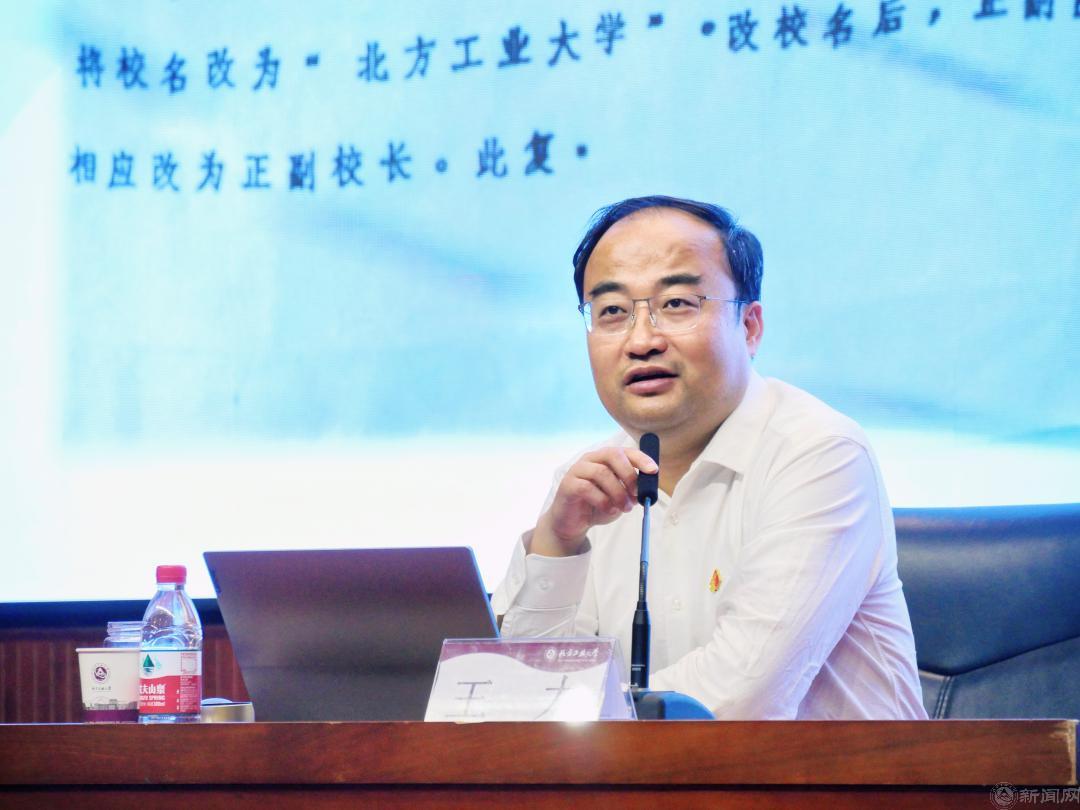 王力深入講解了智能制造的核心內(nèi)涵與構(gòu)成要素,系統(tǒng)梳理了從傳統(tǒng)制造到智能制造的轉(zhuǎn)型升級之路。他結(jié)合中國在工業(yè)互聯(lián)網(wǎng)、智能裝備與機(jī)器人等前沿尖端領(lǐng)域的突破性成果,強(qiáng)調(diào)了推動智能制造發(fā)展的重要意義。他從學(xué)校辦學(xué)近80年的發(fā)展歷程出發(fā),聚焦學(xué)校在智能制造領(lǐng)域的持續(xù)探索,通過一個個鮮活的案例,生動詮釋了北方工大人在挑戰(zhàn)科技前沿中的奮勇拼搏和銳意進(jìn)取,始終以“工業(yè)報國、工業(yè)興國、工業(yè)強(qiáng)國”的精神底色和實(shí)際行動服務(wù)國家重大戰(zhàn)略需求。王力表示,新時代以來,學(xué)校進(jìn)入高速發(fā)展時期,依托老工科、拓展新內(nèi)涵,在新賽道跑出加速度,開啟了新學(xué)科、新學(xué)院、新專業(yè)、新校區(qū)的“四新”建設(shè)新階段。他號召同學(xué)們要把握時代機(jī)遇,傳承“興工報國”紅色基因,以服務(wù)國家戰(zhàn)略、推動區(qū)域高質(zhì)量發(fā)展為核心,在智能制造發(fā)展浪潮中勇?lián)姑劢箍萍记把兀粩嚅_拓創(chuàng)新,展現(xiàn)出新時代北方工大人的挺膺擔(dān)當(dāng)。