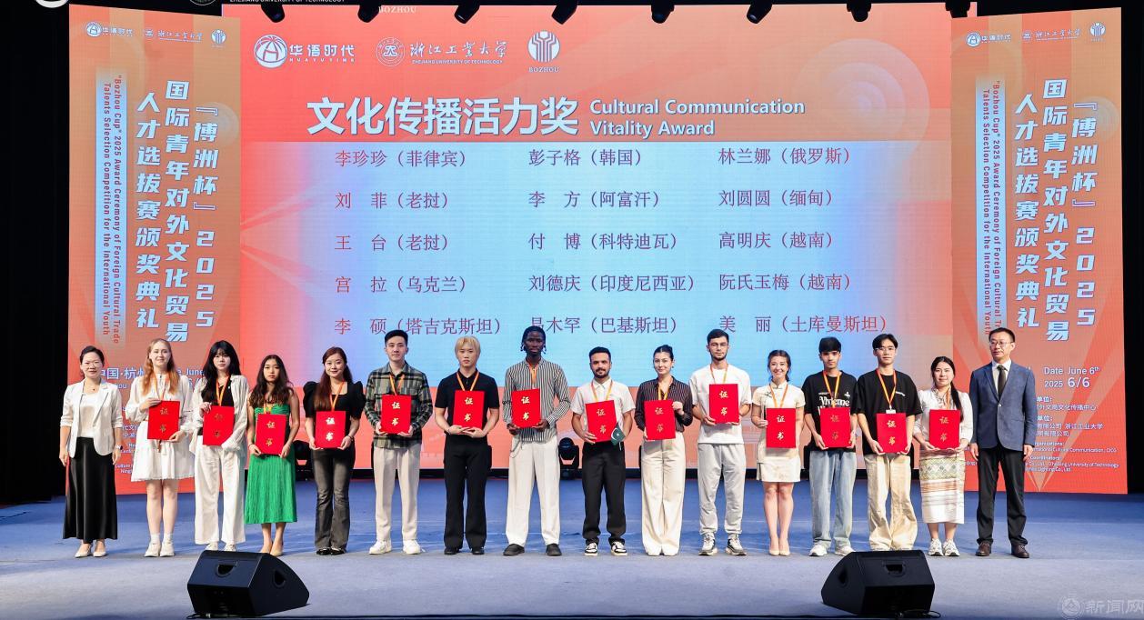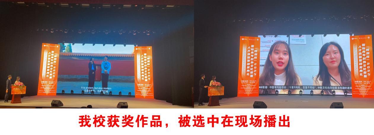 6月6日,由中國外文局文化傳播中心和華語教學(xué)出版社聯(lián)合主辦的“博洲杯”2025國際青年對外文化貿(mào)易人才選拔賽(以下簡稱大賽)頒獎典禮于浙江工業(yè)大學(xué)舉行。我校在本次人才選拔賽中取得佳績,其中劉德慶(印度尼西亞)和付博(科特迪瓦)同學(xué)獲得文化傳播活力獎,德島明日香(日本)、卡馬拉(岡比亞)、徐銀禧(韓國)、哈三(尼日利亞)等同學(xué)獲得文化互鑒友好獎。國際學(xué)院劉妍、吳維、季益靜、劉麗萍等教師獲得優(yōu)秀指導(dǎo)教師獎,我校同時獲評院校優(yōu)秀組織獎。
