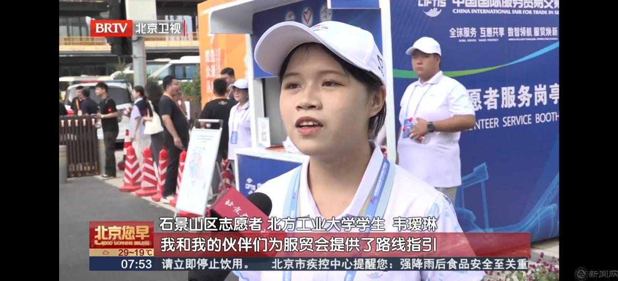 志愿者專業、細致、耐心的服務受到了參會觀眾和用人單位的一致贊譽。服務期間,我校志愿者工設24-1班韋璦琳同學接受了北京衛視和石景山融媒體的采訪,韋璦琳同學表示,能夠參與服貿會這樣高規格、國際化的大型盛會,對她來說是一次無比珍貴的機會,通過這次活動,她深刻體會到了所學技能和知識的實際應用價值。
