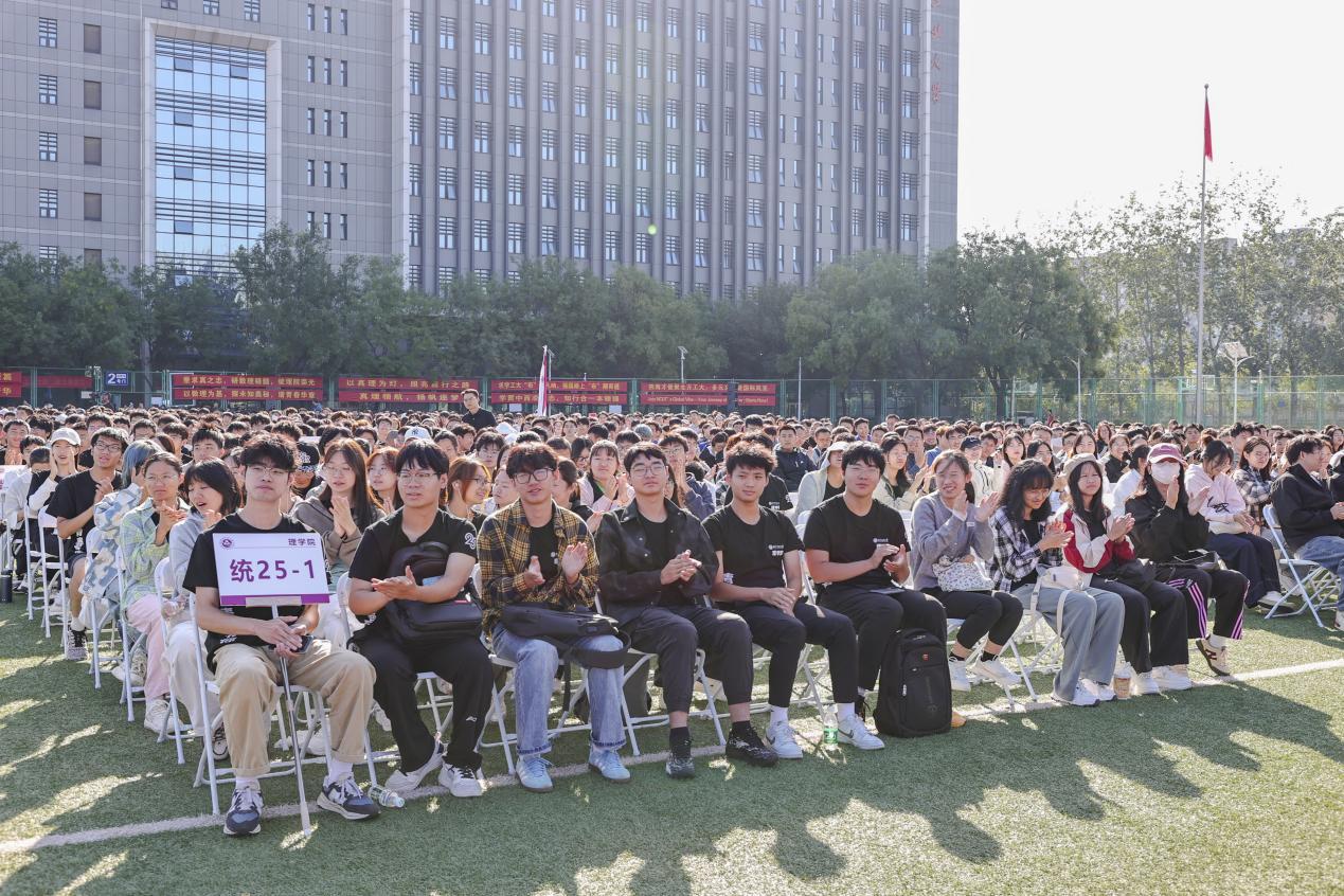張立峰與同學(xué)們分享了四句話:一是保留好大學(xué)的錄取通知書。它承載著同學(xué)們十二年寒窗的汗水,記錄著大家與北方工大的第一次 “約定”,將成為未來回憶青春的“鑰匙”,提醒同學(xué)們牢記“北方工大人”身份,把對學(xué)校的熱愛代代傳承。二是修身立德,在北方工大結(jié)識人生摯友。大學(xué)的朋友是靠譜的,大學(xué)同學(xué)更會成為一生的朋友。要相互包容,呵護(hù)同學(xué)緣分;目中有人,在集體生活中找到和諧相處的節(jié)奏;心中有愛,在相互扶持中收獲真摯的友誼。三是全力以赴,在北方工大書寫青春篇章。始終嚴(yán)格要求自己,養(yǎng)成良好學(xué)習(xí)和生活習(xí)慣,完成“從被動接受知識到主動探究真理”“從跟隨他人腳步到獨(dú)立思考”“從習(xí)慣被安排到主動擔(dān)當(dāng)”的成長轉(zhuǎn)變,立泰山壯志、破萬卷好書、逐千般競賽、塑陽光思維、鍛鋼鐵身軀,活成自己喜歡的樣子。四是牢記為中華民族偉大復(fù)興奮斗的目標(biāo)。主動融入中華民族偉大復(fù)興的壯闊征程,做一個有根有魂、堂堂正正的中國人,將時代重任內(nèi)化于心、外化于行,刻苦求知,明理修身,全面發(fā)展,努力成長為實(shí)現(xiàn)中華民族偉大復(fù)興的鋼鐵脊梁。他寄語同學(xué)們,要以今日為起點(diǎn),以奮斗為筆,成長為“底色亮、能力強(qiáng)、有情懷”的工大人,讓青春在服務(wù)國家、奉獻(xiàn)社會的征程中綻放絢麗之花。