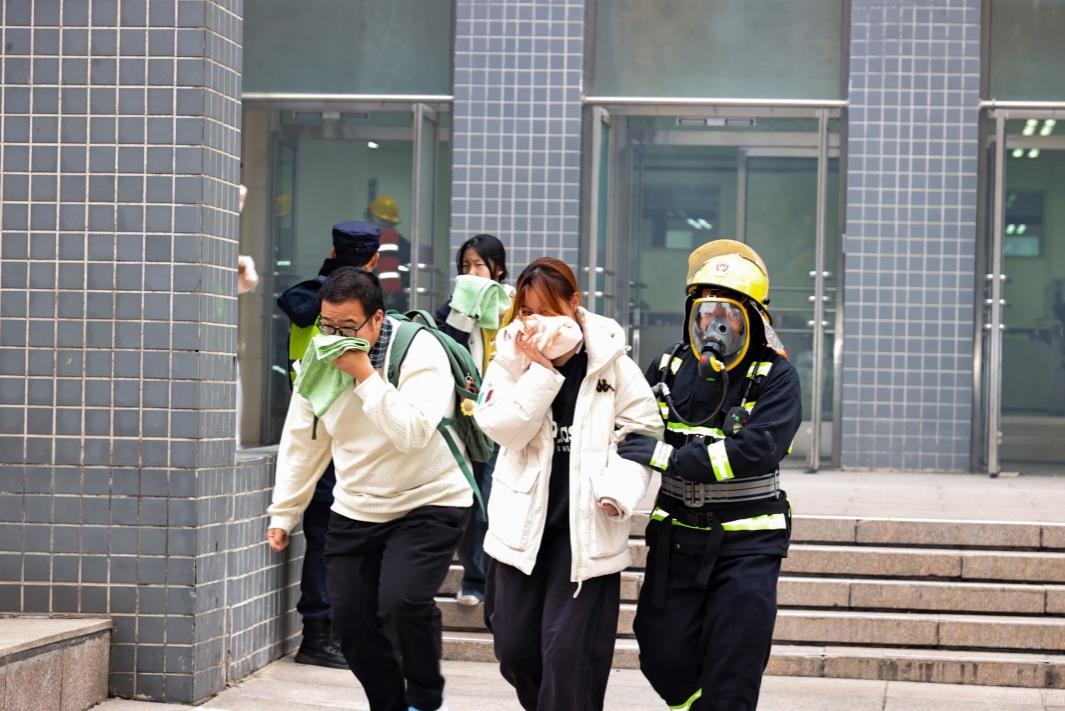 此次演習以學校圖書館突發火情、2000余名學生正在館內學習為背景,按照學校發現火情后立即組織自救,同時拔打“119”救助、通知友鄰首鋼工學院和首鋼醫院支援的基本流程,重點演練了火災接報警、初期火情處置、區域聯動、疏散逃生、營救被困人員、救治轉運傷員、火災撲救等科目。演習過程中,全體參演人員各負其責、緊密協作、有序疏散,通過近似實戰的演練場景,全面檢驗了相關單位快速反應、應急指揮能力,友鄰單位協同作戰、臨機處置能力,師生員工有序疏散、安全逃生能力,消防救援快速到達、精準施救能力,進一步探索完善了區域消防協作模式。