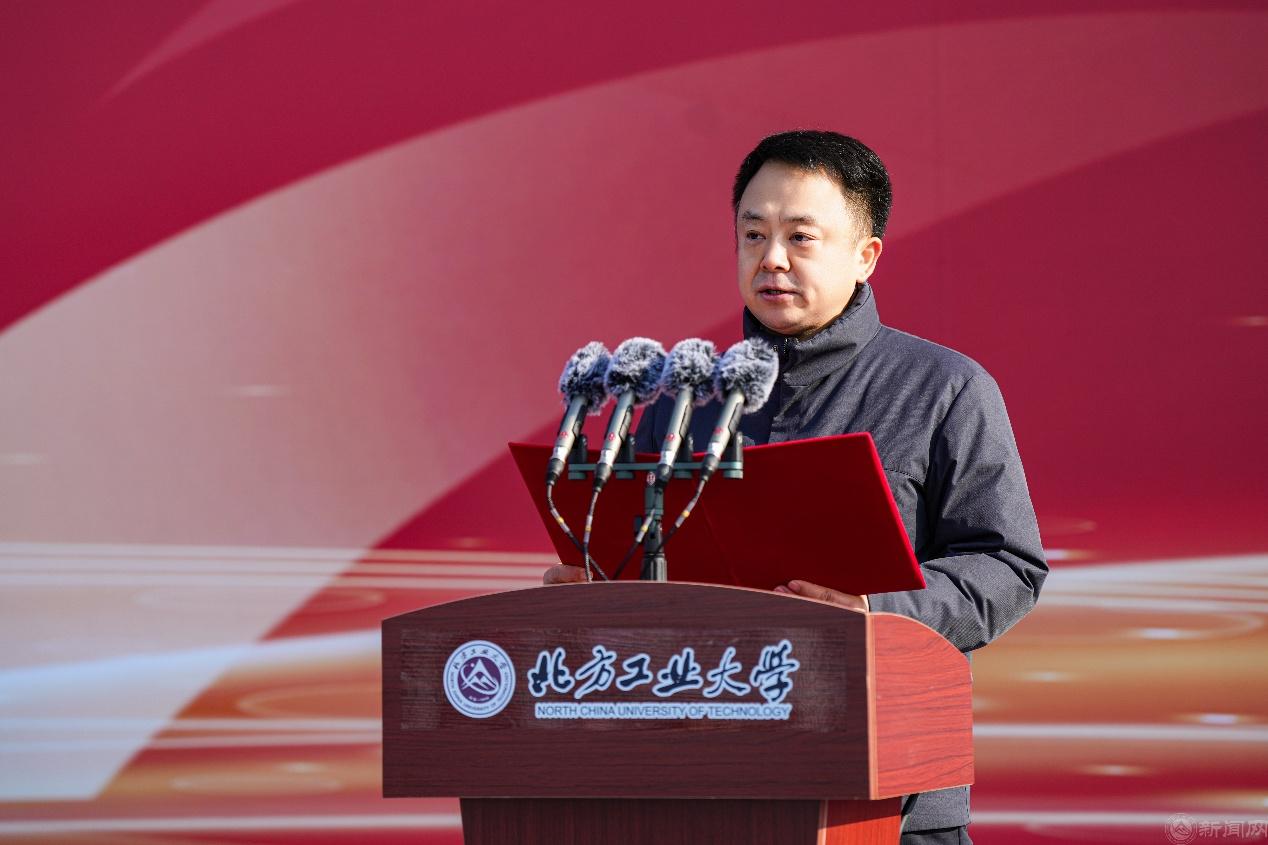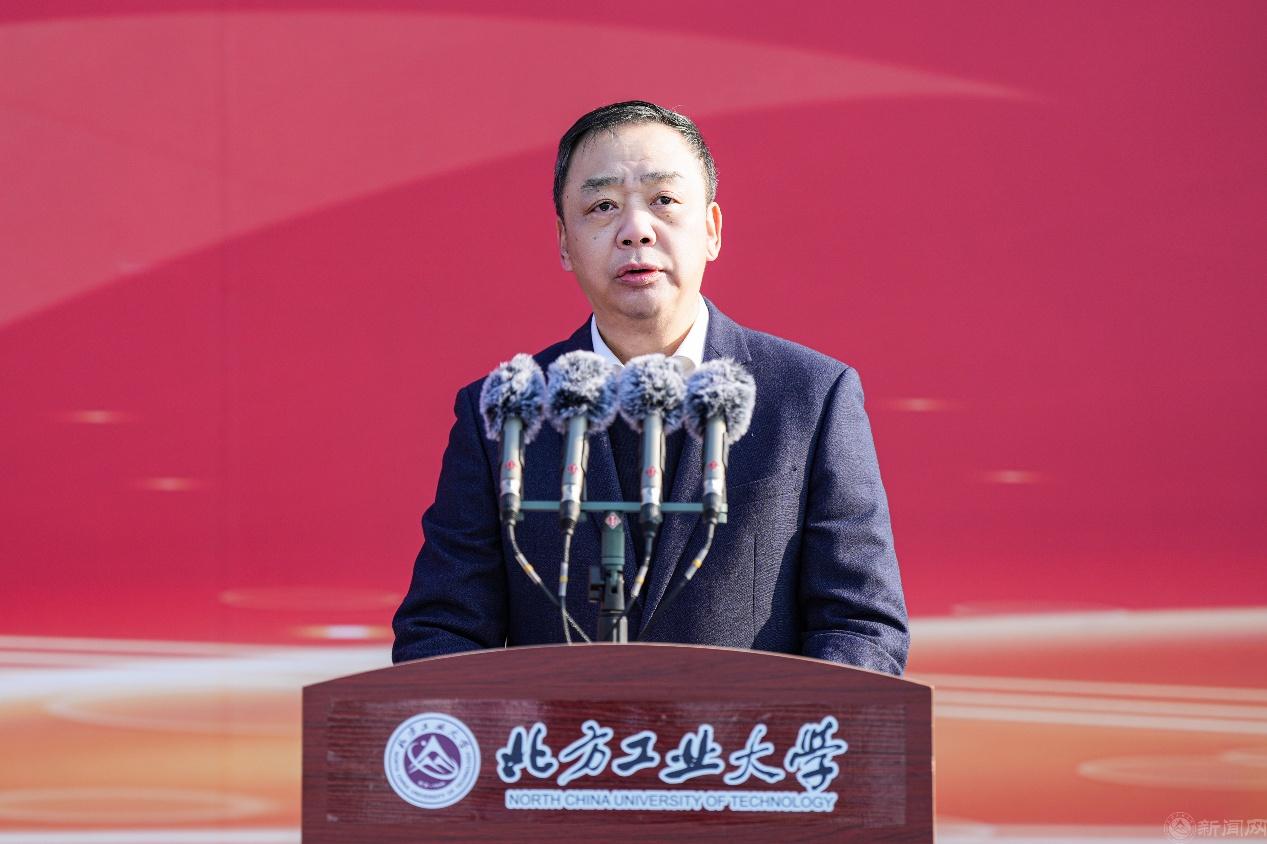 劉軍代表北方工業(yè)大學(xué)向到場(chǎng)領(lǐng)導(dǎo)嘉賓表示熱烈歡迎,向長(zhǎng)期以來關(guān)心支持學(xué)校發(fā)展和延慶校區(qū)立項(xiàng)建設(shè)的市委、市政府、市級(jí)各部門、延慶區(qū)委區(qū)政府及社會(huì)各界致以衷心感謝。他表示,北方工業(yè)大學(xué)自1946年建校以來,始終以興工報(bào)國(guó)為己任,為黨和國(guó)家培養(yǎng)了大批優(yōu)秀人才。近年來,學(xué)校堅(jiān)持“強(qiáng)基固本,提質(zhì)擴(kuò)容”的工作基調(diào),深度融入和服務(wù)首都“四個(gè)中心”建設(shè),人才培養(yǎng)實(shí)現(xiàn)本碩博貫通,布局建設(shè)無人機(jī)、儲(chǔ)能、集成電路、人工智能四大學(xué)科,“老工科”煥發(fā)“新內(nèi)涵”,跑出“加速度”。劉軍表示,延慶校區(qū)是響應(yīng)教育強(qiáng)國(guó)建設(shè)號(hào)召、優(yōu)化市屬高校布局的戰(zhàn)略性舉措,是以空間拓展賦能學(xué)科創(chuàng)新要素集聚的重大機(jī)遇,是推動(dòng)學(xué)校在新的歷史起點(diǎn)上實(shí)現(xiàn)系統(tǒng)性躍升、建設(shè)百年老校的重要舉措,具有里程碑式的重要意義。學(xué)校將堅(jiān)決貫徹落實(shí)市委市政府的決策部署,切實(shí)扛牢主體責(zé)任,與各參建單位通力配合,將延慶校區(qū)項(xiàng)目建設(shè)成為質(zhì)量過硬、品質(zhì)卓越、師生滿意、經(jīng)得起歷史檢驗(yàn)的現(xiàn)代化校園,為全面建成教育強(qiáng)國(guó)首善之區(qū)提供有力支撐。