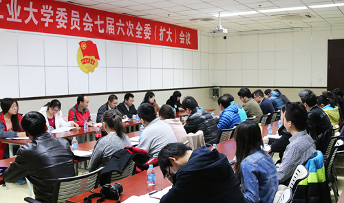 共青團北方工業(yè)大學(xué)委員會七屆六次全委(擴大)會議于2015年3月12日晚在學(xué)生服務(wù)樓318會議室召開,校團委全體委員出席會議,部分學(xué)生組織負責(zé)人和各學(xué)院團干部代表列席會議。