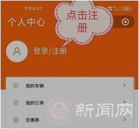 2.在出現(xiàn)的界面點擊“注冊”,“授權手機號登錄”,注冊的賬號為辦理車證時留存的手機號碼;