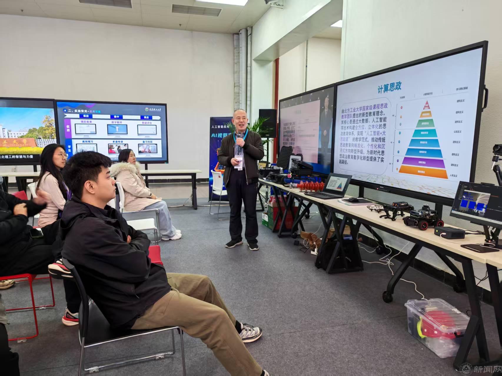 信息學院杜春濤教授和王若賓教授圍繞課程思政教學面臨的教學內(nèi)容更新、教學方法創(chuàng)新、高質(zhì)量學生互動等問題,介紹了我校研發(fā)的“計算思政智能生產(chǎn)與服務平臺”,講解了國產(chǎn)大語言模型為課程思政教學模式帶來的全新變化,演示了如何將大語言模型與課程思政有機結(jié)合,通過智能化的內(nèi)容生成、個性化的學習輔導以及高效的教學評估等方式,實現(xiàn)思政教育內(nèi)容多樣化、個性化與深度化,如鹽化水、潤物無聲地提升課程思政的育人實效。