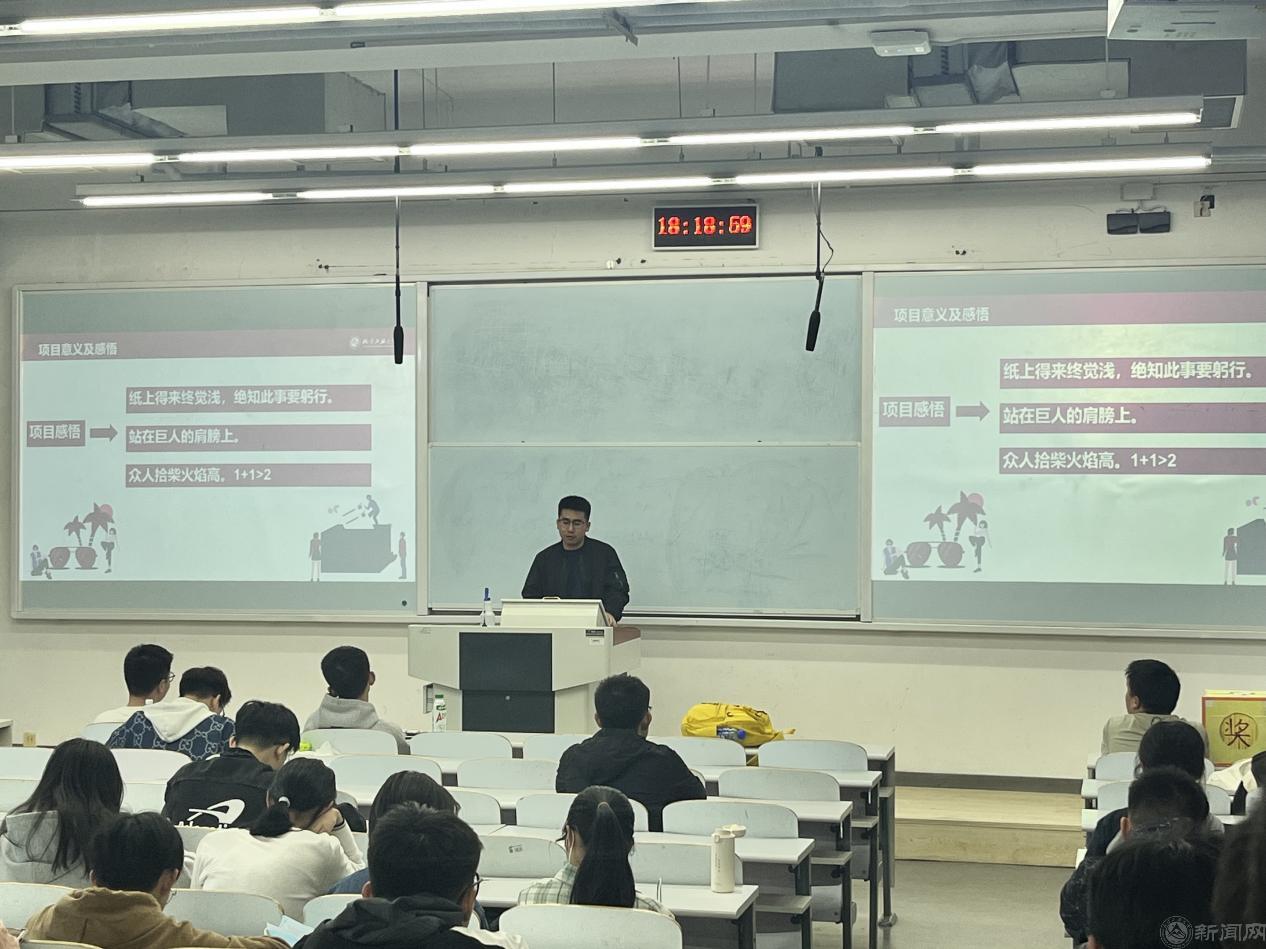 會上,張恩鑫、郭競天分別以"運算放大器的芯片設計驗證與測試"、"數智域言"為案例,深入淺出地講解項目開發過程中的關鍵環節,通過流程圖展示、代碼片段解析和相關視頻播放等多種形式,讓在場同學對項目開發有更加直觀的認識。為增強學生活動參與感,本次分享會采用"講座+互動+抽獎"的多元形式,引導同學們主動思考與學習。互動抽獎活動使現場氣氛熱烈,同學們積極參與、收獲頗豐。