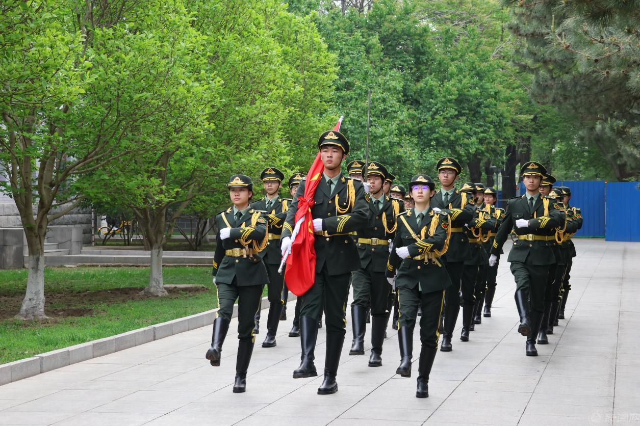 國旗班隊員邁著鏗鏘有力的步伐護送五星紅旗入場。在雄壯的《義勇軍進行曲》中,鮮艷的國旗冉冉升起,全體師生肅立注目,莊嚴的儀式激蕩著每個人的愛國情懷。