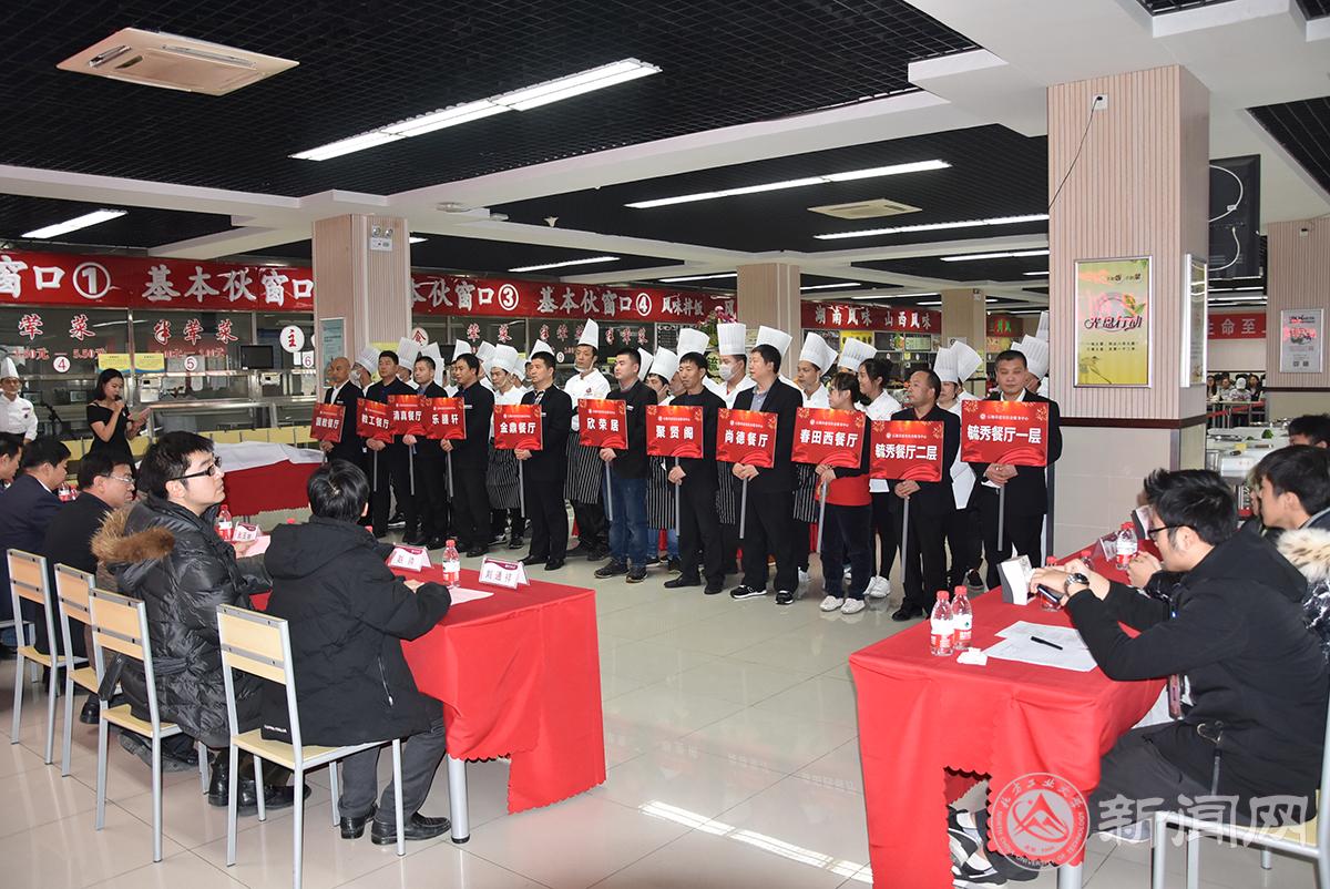 副校長胡應平、校工會常務副主席張玉林、服務中心總經(jīng)理胡春江、服務中心黨委書記張加強、后勤基建處處長趙永兵、學工部副部長趙帥、校團委副書記陳國秀、后勤基建處負責人以及100余名學生代表應邀出席比賽。本次大賽共有11個代表隊37名選手參賽,基本伙食堂、風味食堂、餐廳共11個廚藝展臺參展,參展菜品近百余種。為了保證比賽公開、公正、公平的進行,本次大賽特別邀請我校伙委會5名學生代表擔任比賽評委。