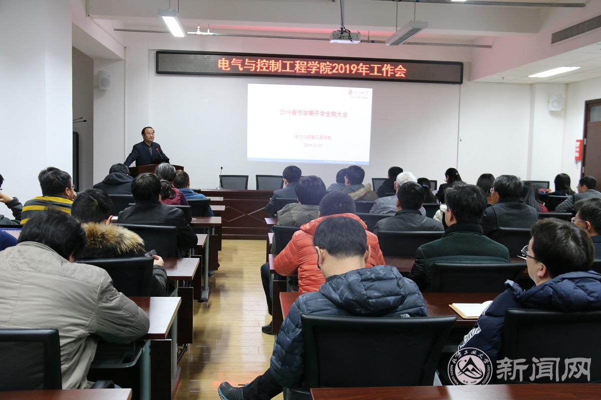 2月22日下午,電氣與控制工程學院在博遠樓452會議室舉行新學期全院教職工大會,部署2019年工作。學院班子成員和全院教職工參加了會議。會議由院黨委書記李穎宏主持。