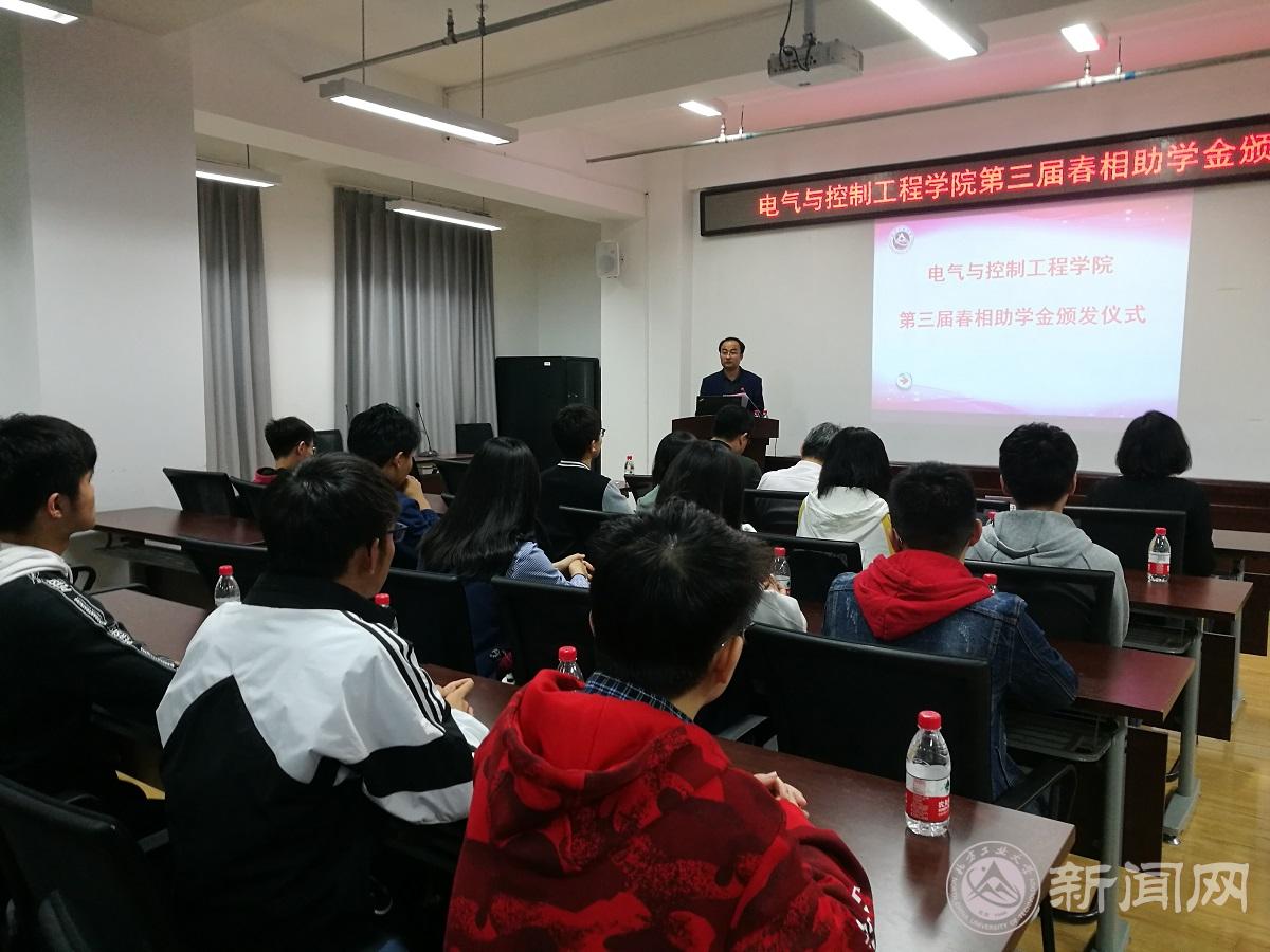 4月24日,電氣與控制工程學(xué)院在博遠(yuǎn)樓452舉行第三屆春相助學(xué)金頒發(fā)儀式。學(xué)院院長(zhǎng)王力、特別代表武家申、輔導(dǎo)員庫(kù)穎及獲助的20名學(xué)生參加儀式。儀式由院黨委副書記史寧主持。