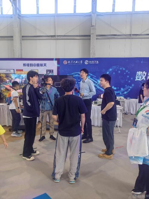 活動(dòng)中,北京電視臺(tái)采訪了在現(xiàn)場(chǎng)負(fù)責(zé)講解的兩名理學(xué)院學(xué)生。統(tǒng)21-2班婁佳豪談到:2035年我應(yīng)該已經(jīng)33歲了,我想那時(shí)候我可能會(huì)成為一名老師,最好是小學(xué)的科學(xué)老師,教孩子們一些科學(xué)小知識(shí),培養(yǎng)他們的科學(xué)素養(yǎng),讓他們對(duì)這些能感興趣。信22-1班田茂利談到:我非常喜歡我現(xiàn)在的專業(yè)信息與計(jì)算科學(xué),既有扎實(shí)的數(shù)學(xué)基礎(chǔ),也有數(shù)據(jù)和人工智能的專業(yè)方向,我將來(lái)一定用我所學(xué)的知識(shí)致力于祖國(guó)的科技發(fā)展,我也很有興趣做科普工作,因?yàn)閷?duì)青少年科技培養(yǎng)非常有意義。