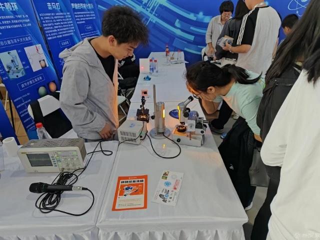 我校理學(xué)院物理系在本次科普嘉年華活動(dòng)中展示的實(shí)驗(yàn)項(xiàng)目涵蓋聲學(xué)與光學(xué)領(lǐng)域。例如,通過(guò)示波器實(shí)現(xiàn)聲音的可視化探究,讓觀眾形象了解聲波特性;光的衍射實(shí)驗(yàn),可以明確呈現(xiàn)出波動(dòng)現(xiàn)象;利用光的偏振制作的走馬燈,形象展示了光的偏振特性;通過(guò)觀察牛頓環(huán),可以理解光的干涉原理。每個(gè)項(xiàng)目都結(jié)合實(shí)際操作,觀眾可親身體驗(yàn)科學(xué)現(xiàn)象。展覽形式互動(dòng)性強(qiáng)、趣味性高,不僅可激發(fā)參與者的興趣,還可有效傳播科學(xué)知識(shí)。