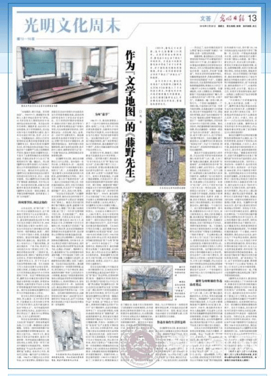 近日,我校中文系教師馮雷博士的文章《作為“文學地圖”的〈藤野先生〉》被“學習強國”全文轉載,原文于2019年3月29日以整版的形式發表在《光明日報》上(http://epaper.gmw.cn/gmrb/html/2019-03/29/nbs.D110000gmrb_13.htm)。
