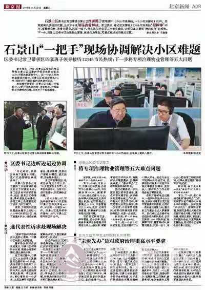 11月21日,石景山區(qū)委書記常衛(wèi)帶領石景山區(qū)四套班子領導悉數(shù)出現(xiàn)在12345市民熱線服務中心。在一個多小時的熱線接通過程中,石景山區(qū)領導共接電116件,同時對于已經處理的訴求進行回訪。熱線接聽結束后,石景山區(qū)立即召開現(xiàn)場會,分析評估熱線內容,當場解決,并選取較有代表性的問題,在當天下午現(xiàn)場查看。