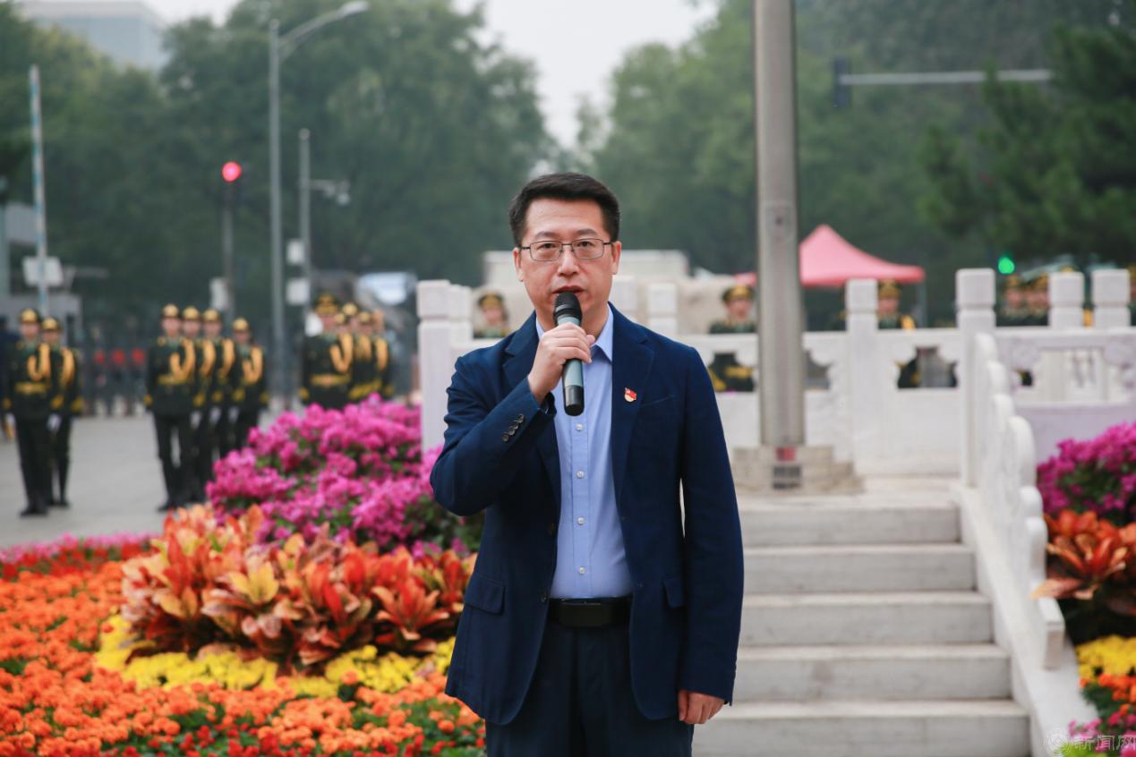 繆勁翔在升旗儀式講話中用四句話和同學們分享了對國旗和升旗儀式的理解和感悟。旗幟就是歷史和記憶。每一次升旗儀式都是對先烈的緬懷和對歷史的追憶,只有銘記歷史,才能繼往開來。旗幟就是信念和方向。在黨的領導下,我們迎來了從站起來、富起來到強起來的偉大飛躍,開辟了中國特色社會主義道路,迎來了實現偉大復興的光明前景,每一次升旗儀式都使我們更加堅定道路自信和制度自信,我們要在黨的領導下堅定不移地沿著中國特色社會主義道路繼續前進。旗幟就是勇氣和動力。在奧運賽場上,運動員們為了升起五星紅旗奮力拼搏,勇爭第一。作為青年學生,應當在屬于自己的青春賽道上奮力奔跑,跑出新時代工大青年的最好成績。旗幟就是責任和使命。同學們擔負著實現第二個百年奮斗目標的責任和使命,要珍惜時光,不負韶華,做有理想有信念有作為有擔當的青年,為實現中華民族偉大復興努力奮斗。繆勁翔還代表學校向同學表示了國慶假期的美好祝福。