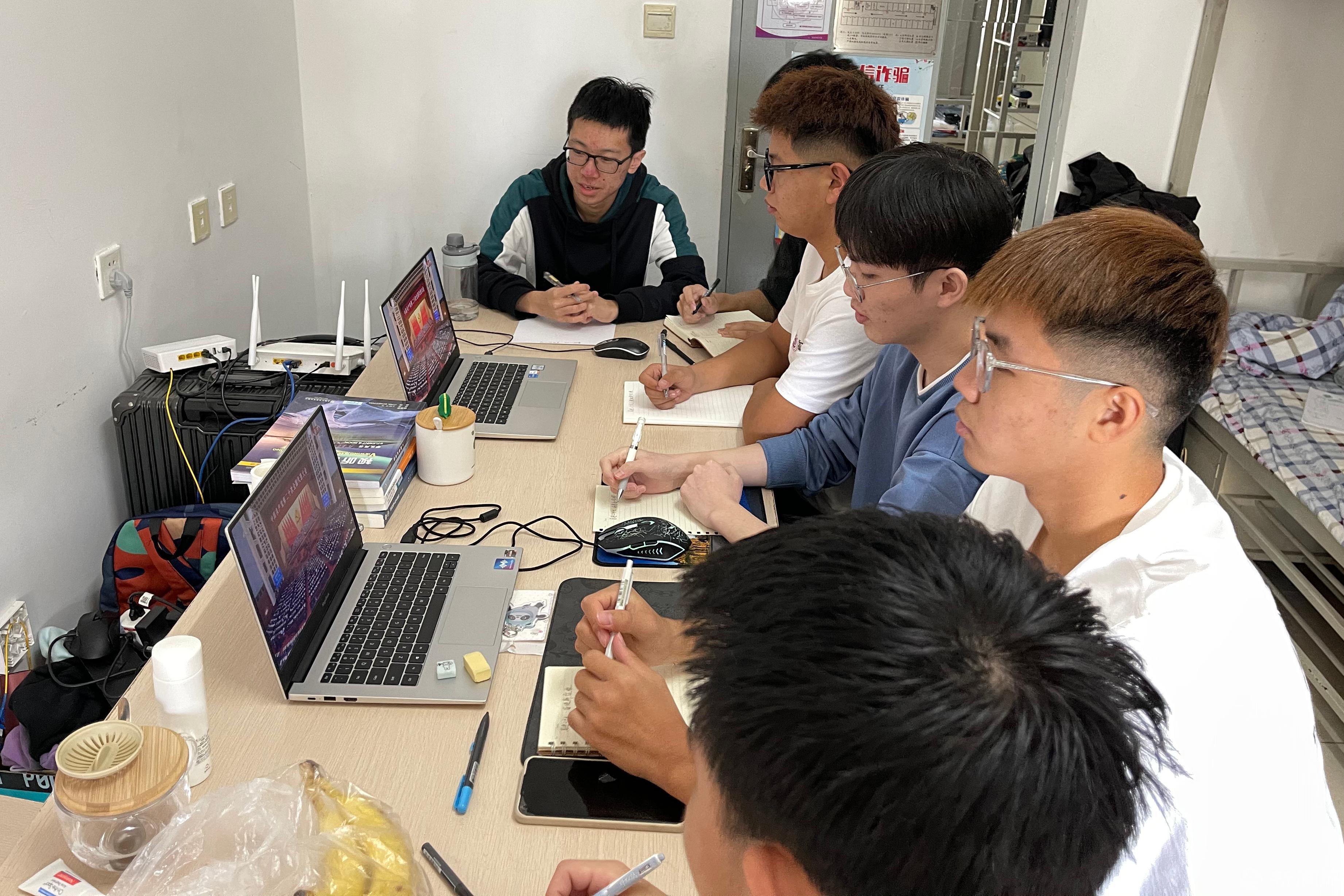 (學生自發在宿舍收看黨的二十大開幕會)