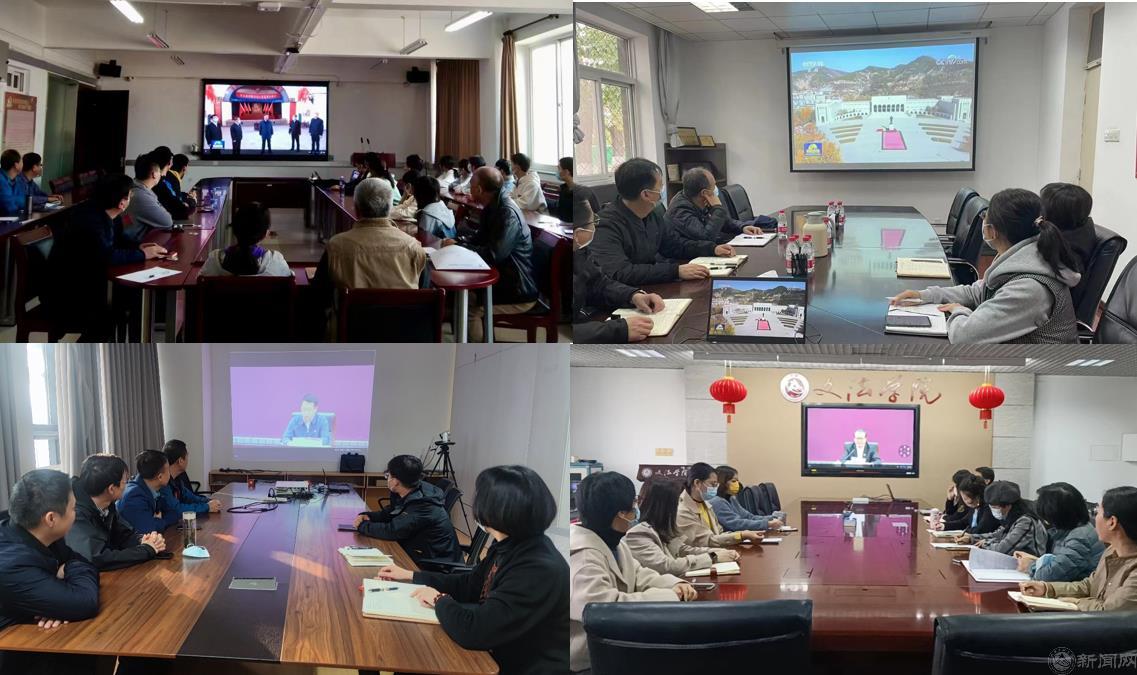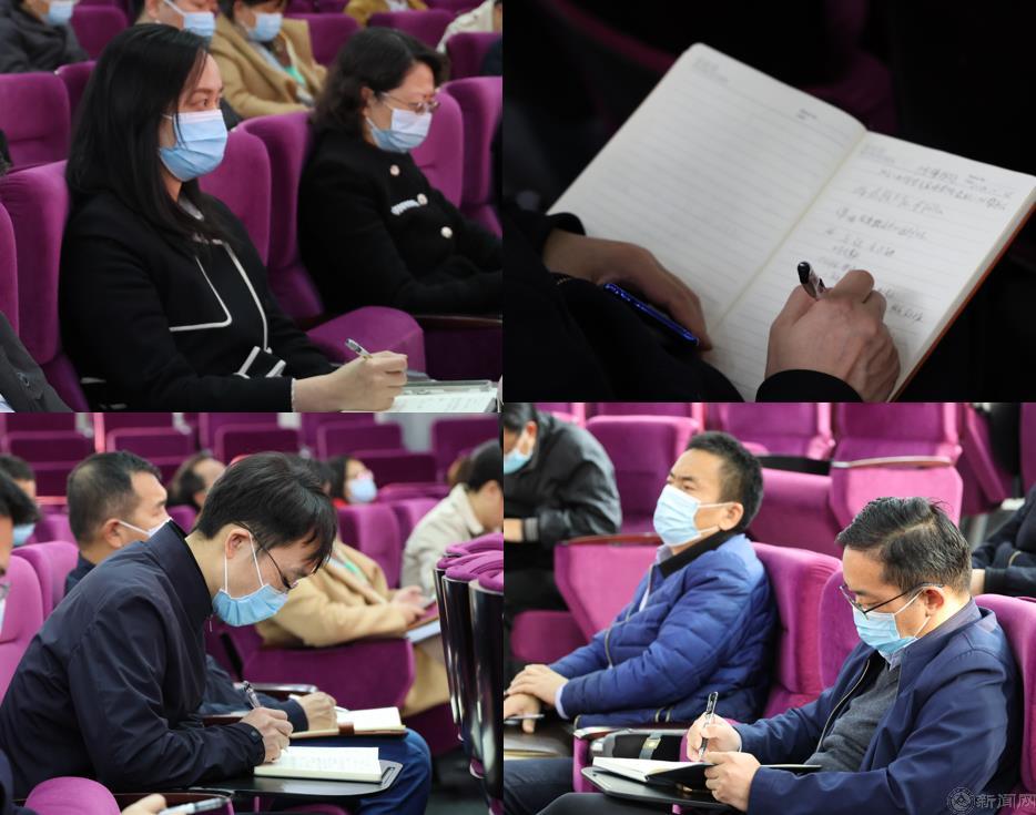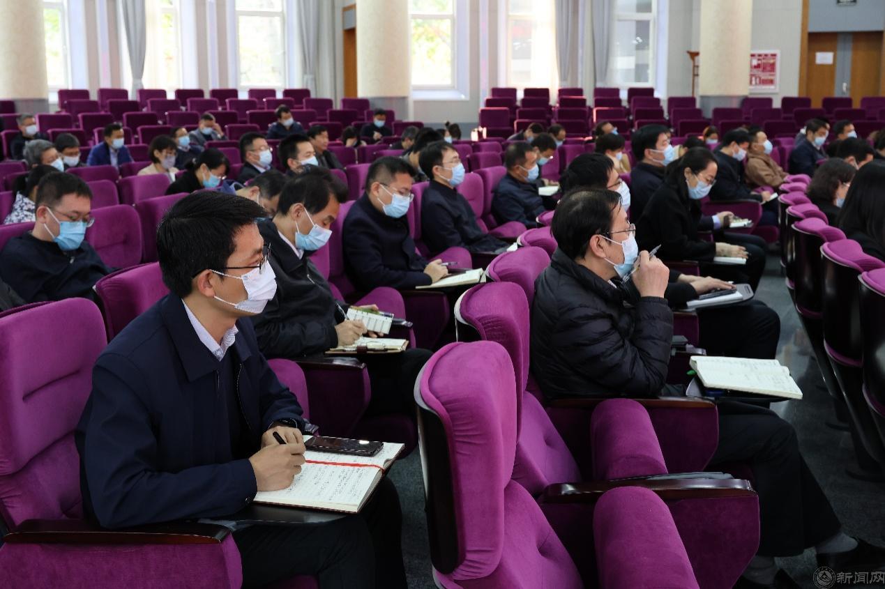會議采用線上線下相結(jié)合的方式舉行。全體校領(lǐng)導(dǎo)、中層干部等100余人在廣學(xué)樓報(bào)告廳主會場參會,黨支部書記、學(xué)工干部、思政課教師及部分師生代表等近300余人通過學(xué)校智慧課堂平臺線上參會。