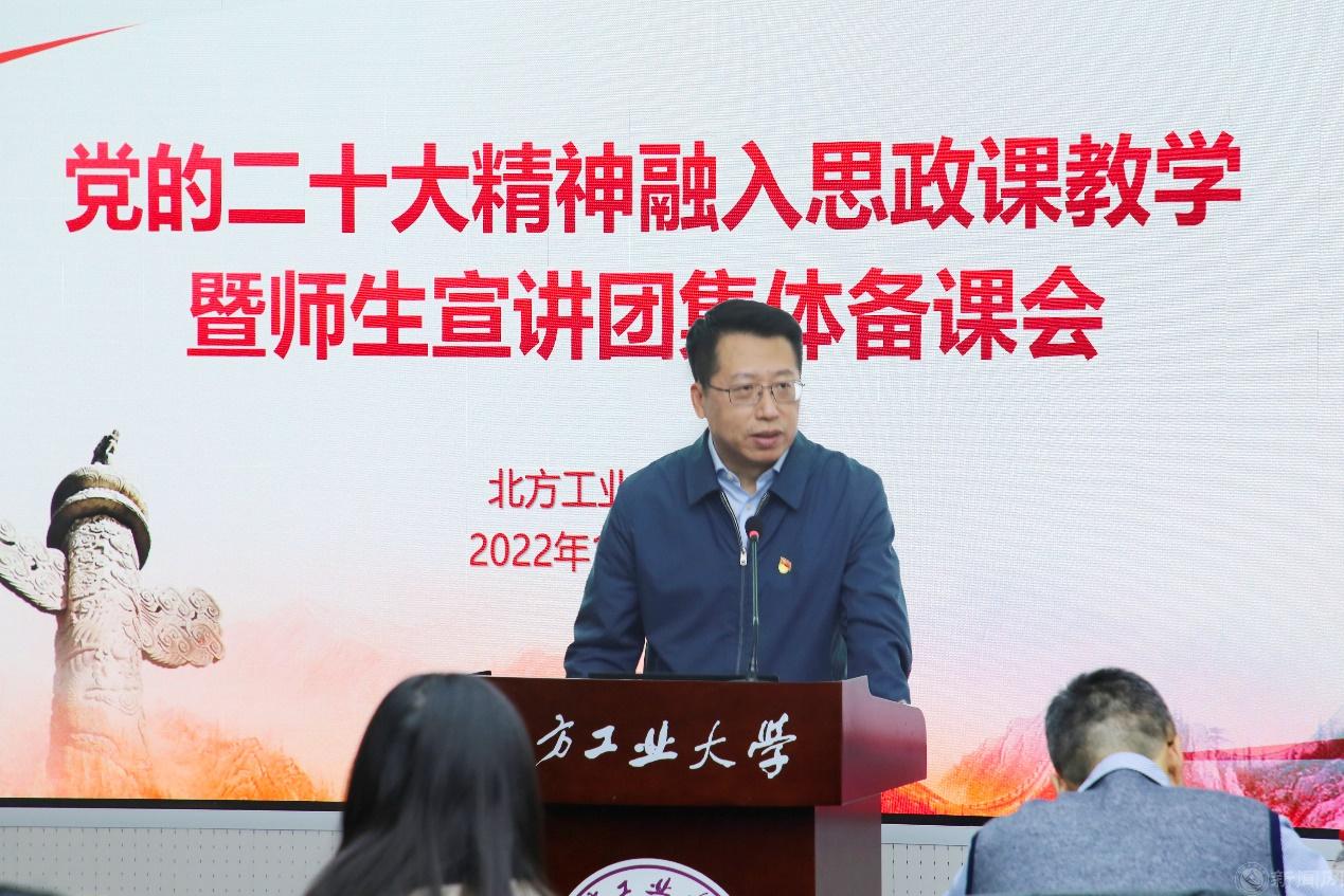 宣傳部部長高國偉介紹了學(xué)校黨委組建黨的二十大精神師生宣講團(tuán)的目的意義和宣講方案,對(duì)具體組織實(shí)施工作進(jìn)行了部署。馬克思主義學(xué)院黨委書記張茂林領(lǐng)學(xué)了黨的二十大精神,系統(tǒng)解讀了黨的二十大報(bào)告的主要內(nèi)容、重大創(chuàng)新與學(xué)習(xí)重點(diǎn)。在備課會(huì)環(huán)節(jié),劉喜珍、李肖、張曉晨、王潤稼、李亞寧等幾位老師先后就黨的二十大精神融入思政課教學(xué)作了主題發(fā)言。