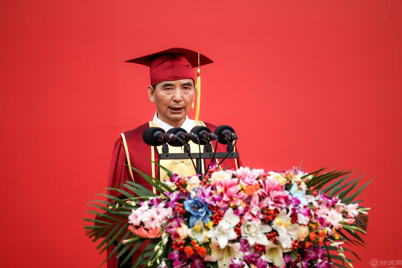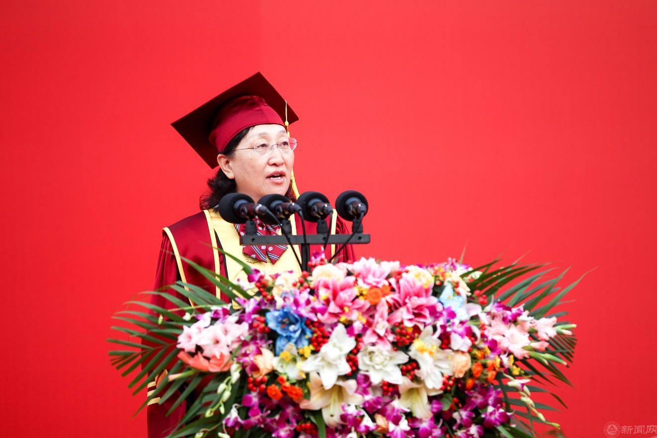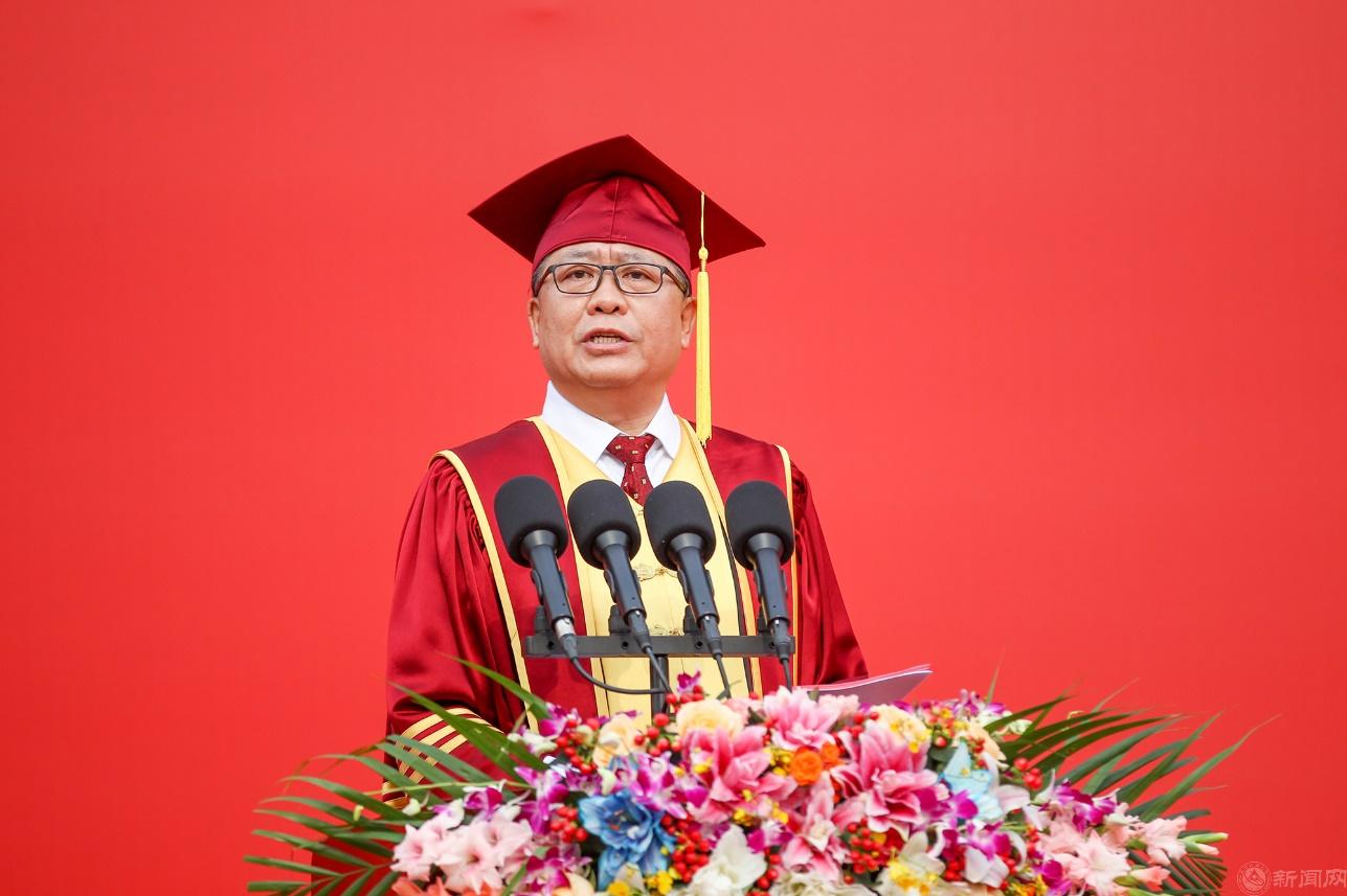上午7點整,畢業典禮在升國旗、奏唱國歌中正式開始。校黨委副書記田紅芳主持大會。