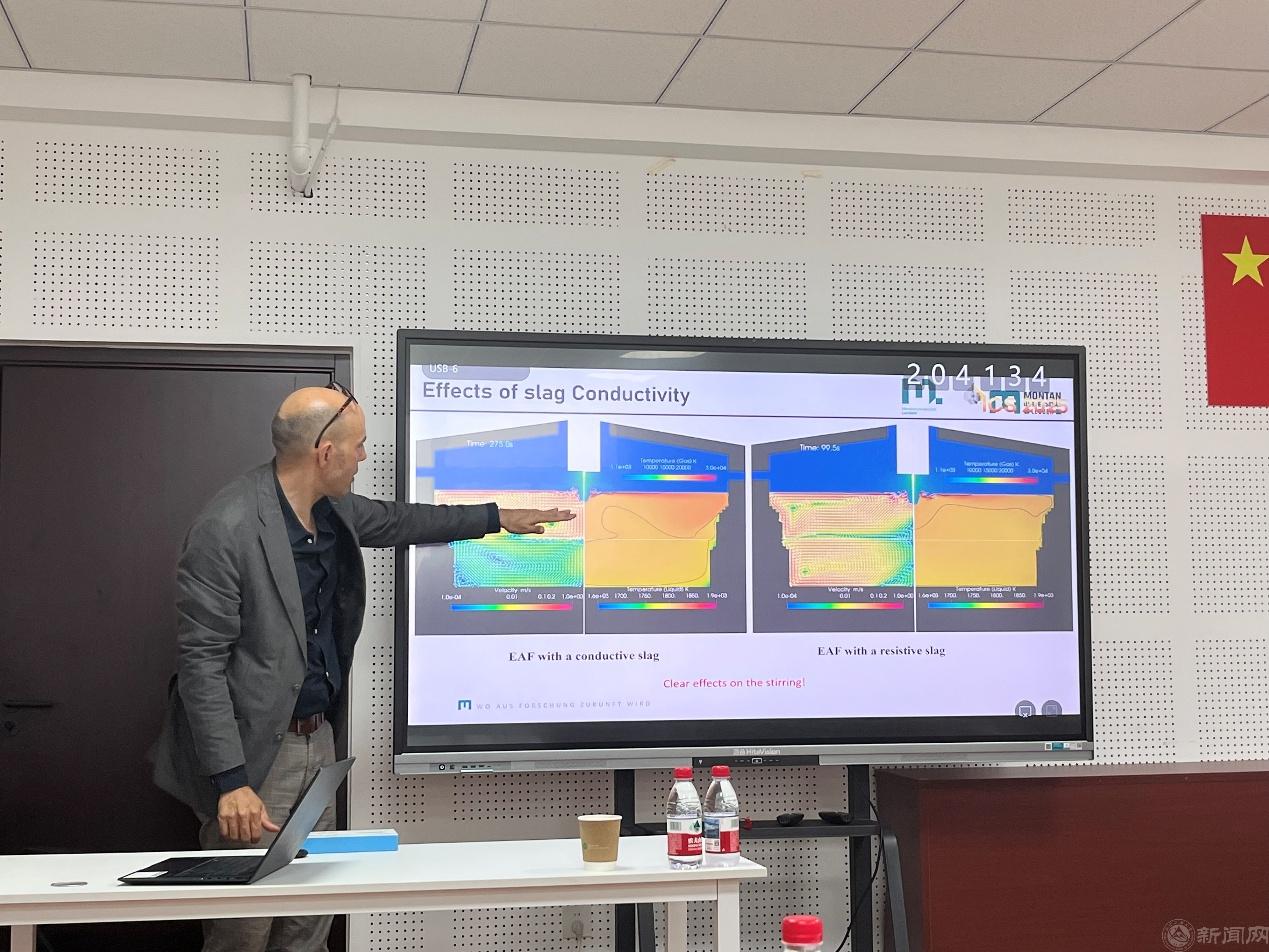 Kharicha 教授為院里師生做了題為 “Advanced Simulation of Electric Steelmaking(電爐煉鋼的數(shù)值仿真)” 的學(xué)術(shù)報(bào)告。報(bào)告聚焦電弧爐(EAF)、電渣重熔(ESR)、真空電弧重熔(VAR)等電爐煉鋼工藝,系統(tǒng)闡述了多物理場(chǎng)高級(jí)模擬技術(shù)在高溫熔煉過(guò)程中的理論和應(yīng)用。