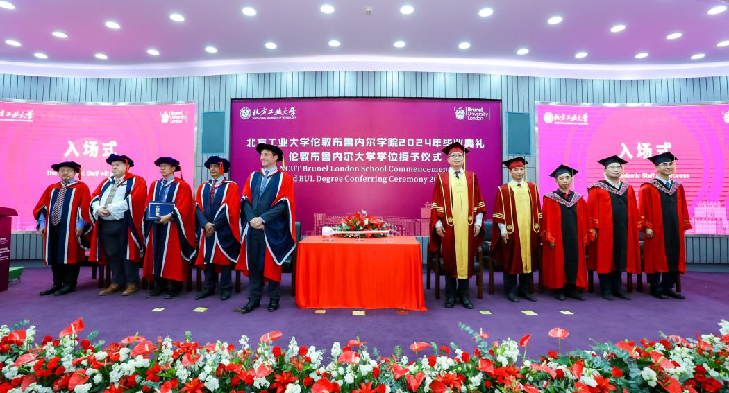 6月19日,北方工業大學倫敦布魯內爾學院在廣學樓報告廳隆重舉辦2024年畢業典禮暨英國倫敦布魯內爾大學學位授予儀式。英國倫敦布魯內爾大學校長AndrewJones,北方工業大學黨委副書記、校長張立峰,黨委常委、副校長王建穩,英國倫敦布魯內爾大學工學、設計及物理學院院長AbdulnaserSayma,北方工業大學信息學院院長馬禮、理學院院長李冱岸,北方工業大學倫敦布魯內爾學院院長楊志輝、英方副院長MaozhenLi,專業負責人、畢業班班...