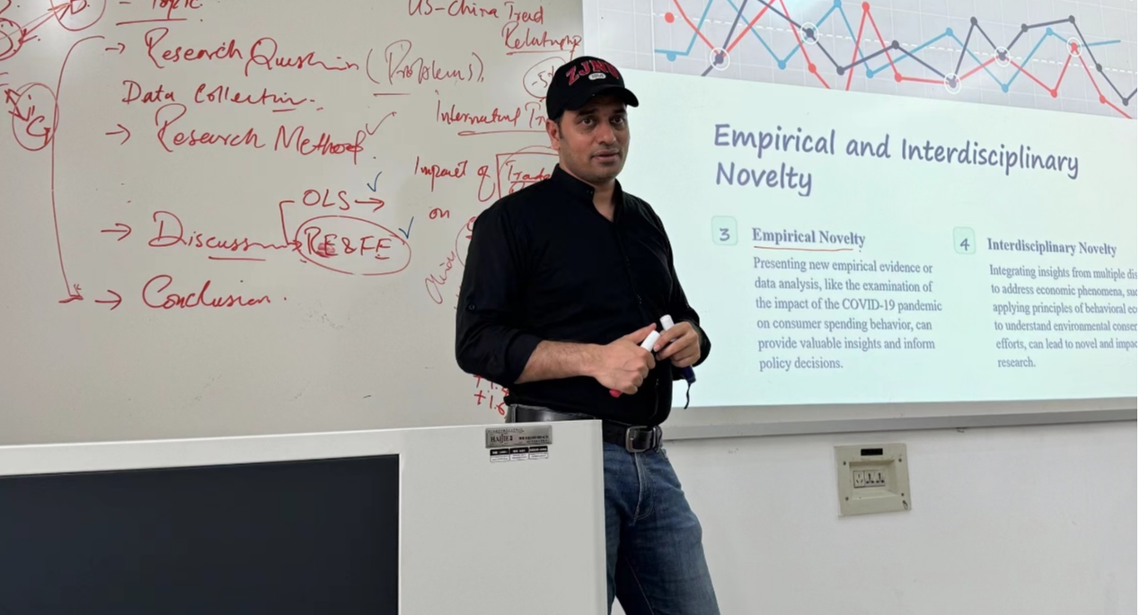 4月26日下午,經濟管理學院勵學講堂第十六期在勵學樓517舉行,浙江師范大學教授AdnanKhurshid應邀做主題為“批判性思維和社會科學研究”的學術講座,校黨委宣傳部副部長王昕宇副教授主持學術報告。本次講座中,Khurshid教授按照論文寫作的主要流程,結合自己發表的頂級期刊論文,向同學們細致講解了如何撰寫一篇高質量的經濟研究論文。他指出,首先要選擇一個研究主題,在選擇主題時要綜合考慮自己的興趣、目前的新興趨勢以及已...