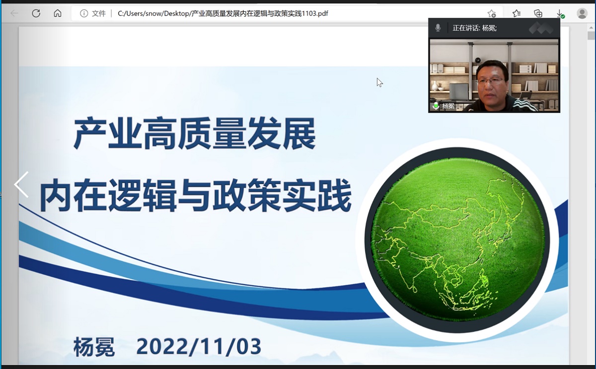11月3日,經(jīng)濟(jì)管理學(xué)院“勵(lì)學(xué)講堂”第3期以騰訊會(huì)議形式舉行。武漢大學(xué)經(jīng)濟(jì)與管理學(xué)院教授、博士生導(dǎo)師、經(jīng)濟(jì)研究所所長、湖北省人文社科重點(diǎn)研究基地——武漢大學(xué)人口·資源·環(huán)境經(jīng)濟(jì)研究中心主任楊冕教授受邀為學(xué)院師生開展主題為“產(chǎn)業(yè)高質(zhì)量發(fā)展內(nèi)在邏輯與政策實(shí)踐”的學(xué)術(shù)報(bào)告。講座由經(jīng)管學(xué)院郭正權(quán)教授主持。?楊冕教授重點(diǎn)闡述高質(zhì)量發(fā)展的由來及其本質(zhì)內(nèi)涵,通過豐富理論知識(shí)向與會(huì)師生深刻的闡述了產(chǎn)業(yè)高質(zhì)量發(fā)展的核...