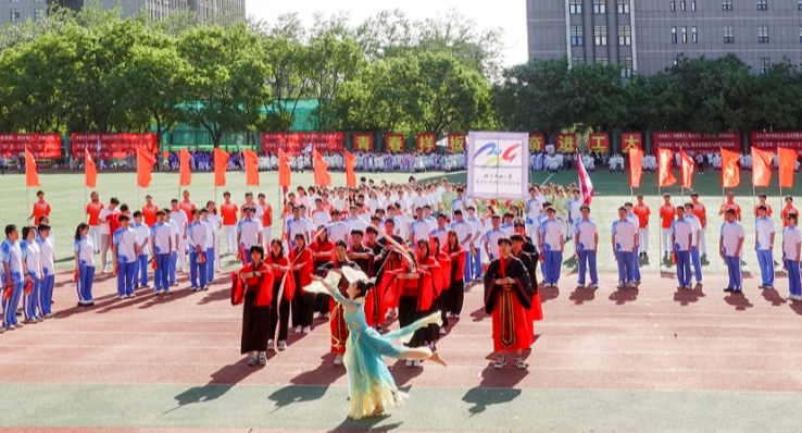 上午8時,伴隨著雄壯的運動員進行曲,國旗方隊和運動會會徽方隊邁著堅定的步伐引領各方隊入場。
